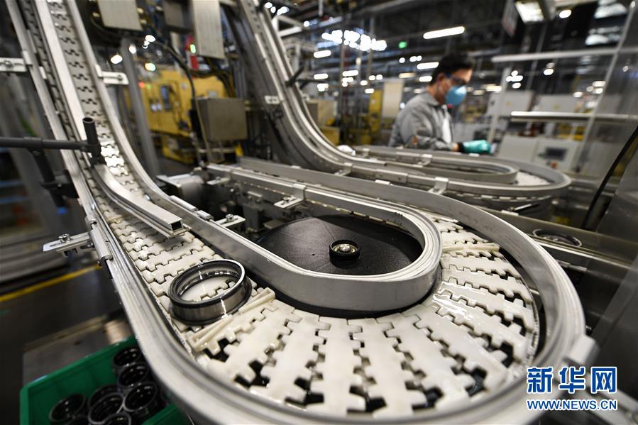 在宁夏银川市经济开发区内,舍弗勒(宁夏)有限公司员工在汽车轴承车间忙碌(3月11日摄)。 新华社记者 冯开华 摄