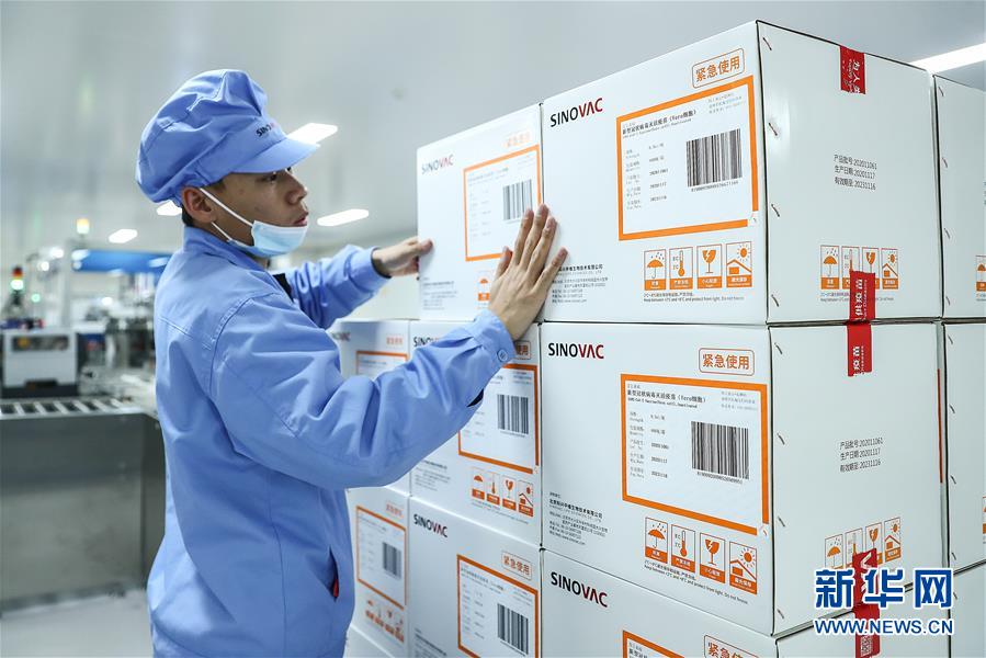 2020年12月23日,工作人员在科兴中维的新冠疫苗包装车间检查外包装标签。新华社记者 张玉薇 摄
