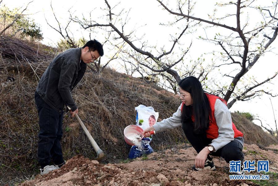 2月20日,连城县供销社工作人员邹玮(右)在四堡镇双泉村芙蓉李种植基地指导当地果农精准施用配方肥料。 2018年以来,福建省连城县供销社推出测土配方精准施肥服务,先后为闽赣两省6个地市的6万多亩水稻、茶叶、果蔬、花卉等农作物提供测土配方肥料,实现生态环保、降本增收、提质增效,助力当地农业产业转型升级。 新华社记者 彭张青 摄