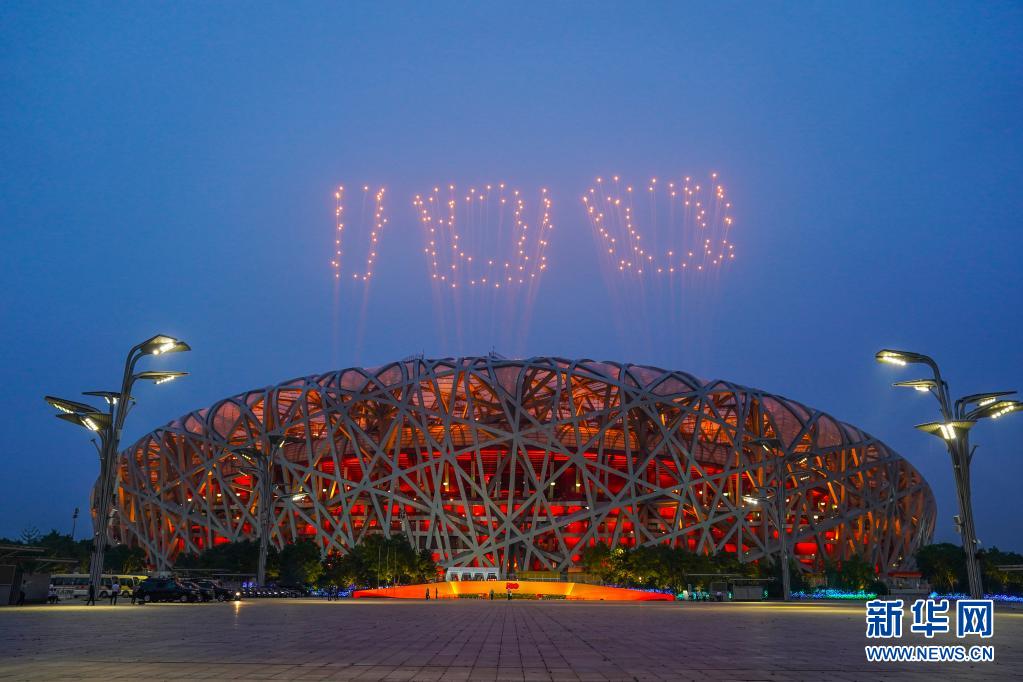 6月28日晚,庆祝中国共产党成立100周年文艺演出《伟大征程》在国家体育场盛大举行。这是焰火盛放在国家体育场上空。新华社记者 陈钟昊 摄