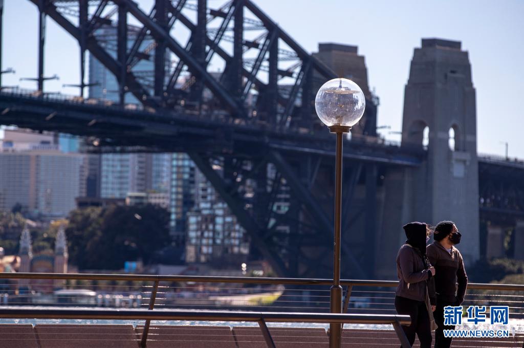 7月18日,在澳大利亚悉尼,戴口罩的行人走过海港大桥畔。